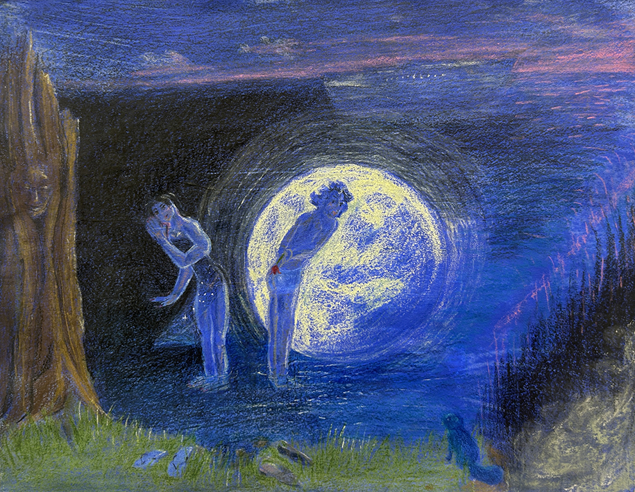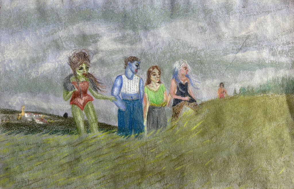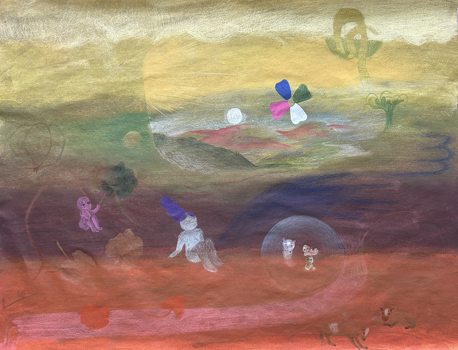 Creatures of the night es un conjunto de obras pictóricas que representan escenas alternativas que se distancian de la normatividad. Un espacio moldeable y sincero de situaciones donde “lo raro” ocupa el lugar protagonista. Donde todo puede pasar: escenas de vulnerabilidad donde emergen historias de amor y amistad, fiestas de las que tendrías que haberte ido antes o encuentros sobrecogedores en la naturaleza.