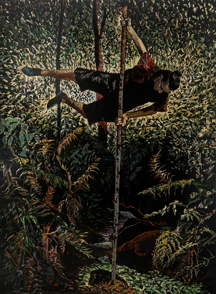 Una selección de 7 cuadros, de los 12 hechos hasta el momento, componen la exposición en la galería Juan Manuel Lumbreras.